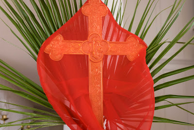 | Lighting the paschal candle for the Easter Vigil procession. |